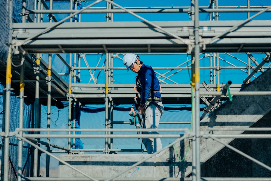 担当業務は、その日の作業内容によってさまざまです。壁を塗ったり、モルタルで床を均したりする仕事もありますが、私はそうした作業に入る前の段取り作業(準備)を主に担当しています。